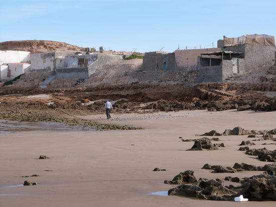 Die Sous-Ebene zwischen dem Hohen Atlas und dem Antiatlas auf der Höhe von Agadir wird auch als vorafrikanische Furche bezeichnet. Ab sofort sind wir wirklich in Afrika. Trocken, heiß, ein Spaziergang mit nackten Füßen im Meer, relaxen, das haben wir alle nötig.