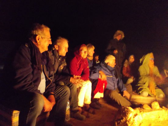 Die Gesellschaft ist gesättigt und lässt sich wieder am Lagerfeuer nieder. Die Einheimischen singen und Trommeln und wir klatschen eifrig mit. Unter dem unendlichen Sternenhimmel Afrikas mit dieser fremdländischen Musik, sind wir in einer anderen Welt. Ein bisschen verräuchert aber zufrieden verschwinden alle in ihren Zelten. Wir haben Schlafsäcke dabei und Trainingsanzüge, doch die Nase friert uns fast ab. Morgens sind wir als erste munter, laufen dem Sonnenaufgang ein wenig entgegen, dann gibt’s Frühstück und danach machen wir uns auf den holprigen Rückweg.