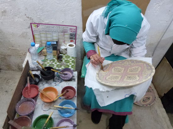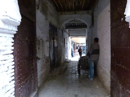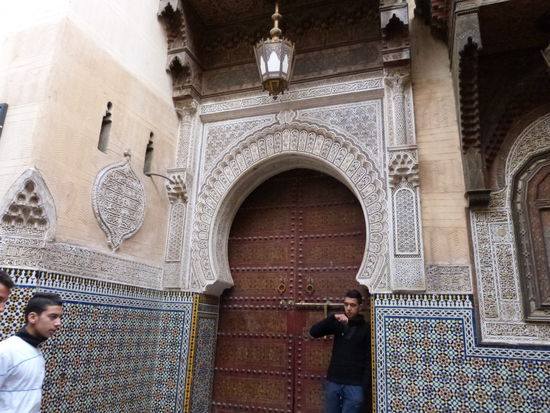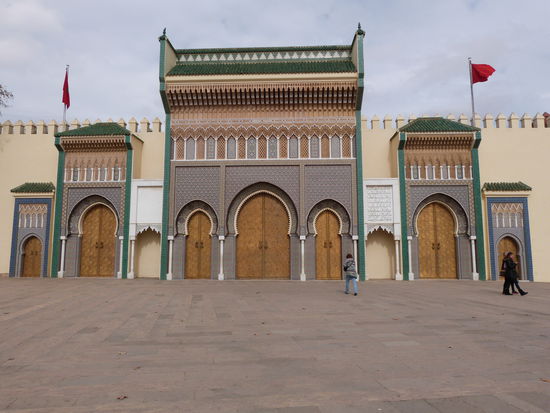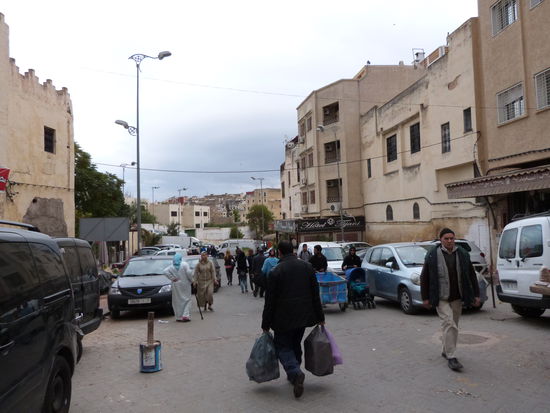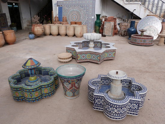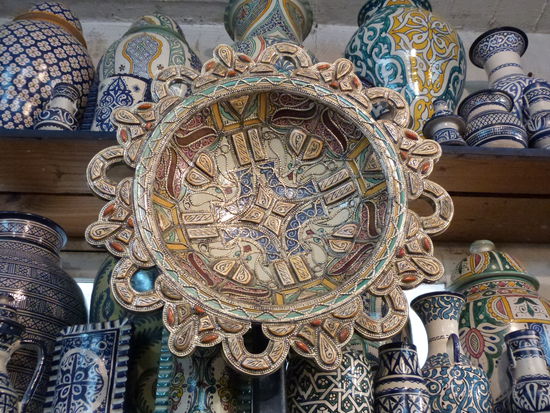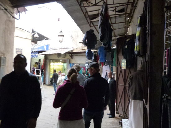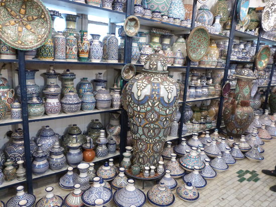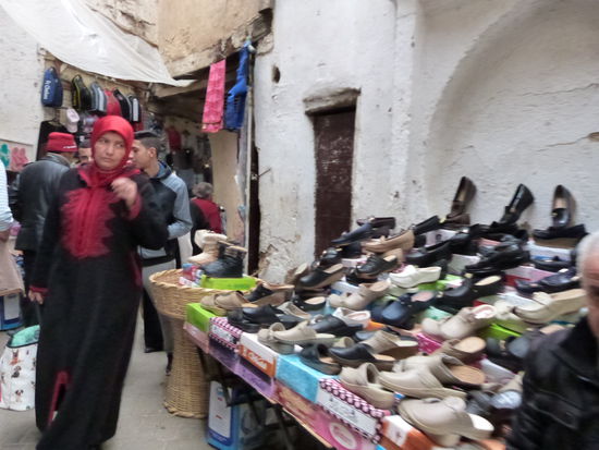 . Wir kommen aus dem Mittelalter in die Neuzeit. Fes ist eine ziemlich moderne Stadt. Bis auf die Medina, die Altstadt, natürlich. Sie ist gigantisch. Ein Fuchsbau. Für Nichteinheimische ein Irrgarten aus Gassen, ein gigantischer Souk. Wir besichtigen eine Töpferei, können uns der Abzocke in einer Gerberei erfolgreich erwehren, besuchen eine Karawanserei, die heute eine Weberei ist, werfen einen Blick in eine Moschee, natürlich nur von außen und irren wie die aufgeschreckten Hühner stundenlang durch die dunklen Gassen. Die Gerüche sind animalisch. Die Auswahl der angebotenen Waren auch. So viel Goldschmuck wie in den Basaren von Istanbul und Fes angeboten werden, gibt es auf der ganzen Welt nicht mehr.