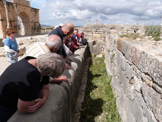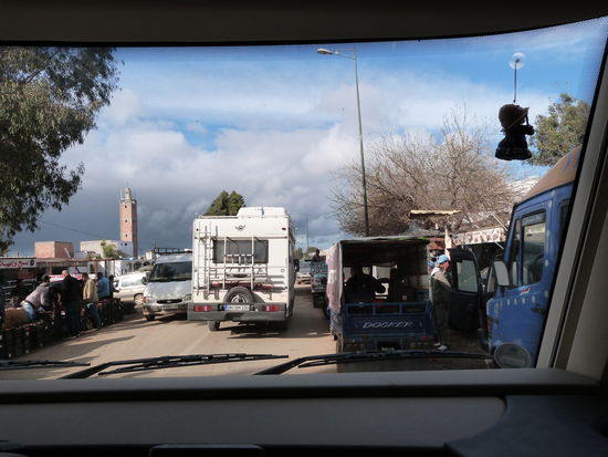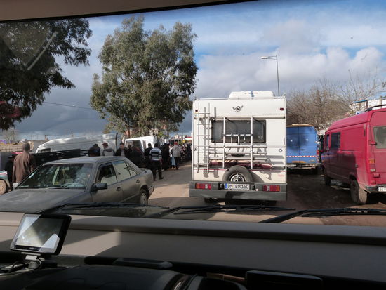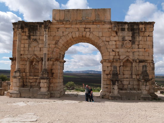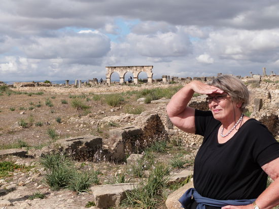 zu denken, dass wir heute eine gemütliche letzte Fahrt haben, ist natürlich ein Irrglaube, wenn man unseren Führer Uwe kennt. Als erstes verfährt er sich und nimmt nicht die richtige Abfahrt auf der Autobahn und die Karawane natürlich troddelig hinterher. Jetzt fahren wir in der Rush-Hour durch Meknes zu einem Gaswerk um unsere Gasflaschen füllen zu lassen. Dann geht das ganze nochmal durch die quirlige Stadt und wie könnte es auch anders sein… es geht aufwärts in die Berge. Wir wollen die größte ausgegrabene Römerstadt Marokkos besuchen – Volubilis. Gleich daneben liegt Moulay Idriss, hier ist der Gründer Marokkos geboren, also ist das eine heilige Stadt. Dreimal Moulay Idriss golbt in Marokko so viel wie einmal Mekka. Die Römerstadt ist sensationell und die Anfahrt und das steile klettern zu den Ruinen absolut wert. Und, ich sagte es ja schon, es wäre nicht unser Uwe, würde er nicht ganz zum Abschied noch ein paar Holperstraßen finden.