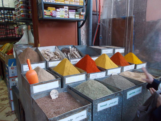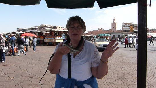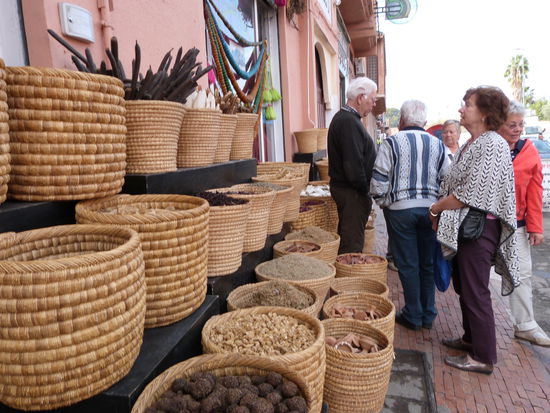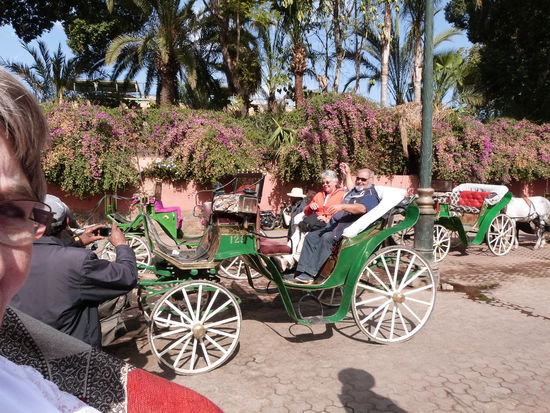 20.1. Heute ist ein ganzer Tag Marrakesch angesagt. Natürlich beginnen wir unseren Rundgang wieder auf dem Platz der Geköpften, dem Djamal-el-Fna. Schlangenbeschwörer, Artisten, Trommler, Verkaufsstände mit herrlichen Trockenfrüchten, Orangen, Menschen aller Couleur, Nüsse, Tuktuks, Huperei, Esel, Pferdekutschen, Restaurants, angekettete Hühner und junge Greifvögel, Gürtelverkäufer, Souvenirs, Schuhputzer, Geschrei, Gefiedel, viele Helfer, die ständig kehren. Händler, die jeden versuchen einzufangen. Musik, Geplärr vom Muezzin. Der Platz ist Bühne des Lebens, Festplatz, Freilichttheater, Straßen-Restaurant, Jahrmarkt und Zirkusarena. Alles nichts gegen die Souks. Es gibt nichts, was es hier nicht gibt. Es ist nicht zu beschreiben. Man muss es sehen. Marrakesch ist eine westlich orientierte Großstadt mit exotisch-orientalischem Flair. Zauberhaft.