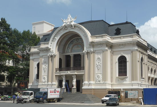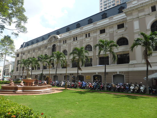Wir drehen aber kurz ab, und wollen einen Blick in das Saigon-Opernhaus werfen. Doch dort sind Bühnenarbeiter hektisch zugange und verhindern eine Besichtigung von Innen.
