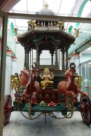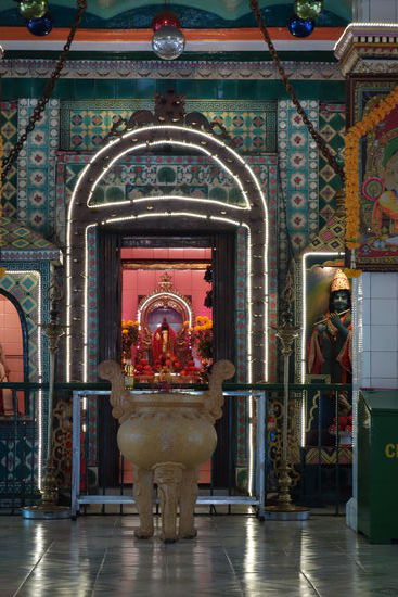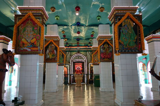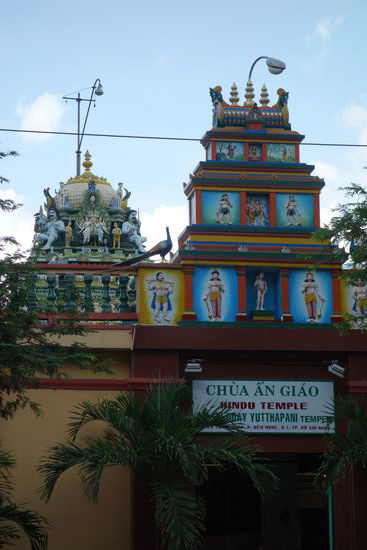 Dabei fällt mir ein quadratischer bunter Komplex auf – ein Hindutempel (in der Ton That Thiep).