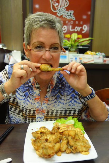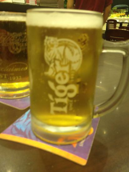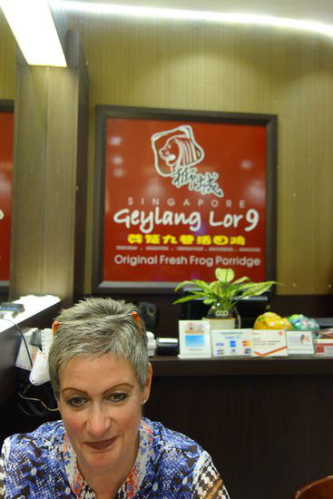 Unsere Wahl fällt auf das Geylang Lor 9, und zwar da es hier Frosch gibt – in den Nachbarlokalen sitzen zahlreiche Touristen, hier ist niemand (außer uns) europäisch. Meine Frau ißt frittierte Frösche mit ebenfalls frittierten Knoblauchscheibchen und ist begeistert, ich wähle Nudeln mit Beef und PakChoi, dazu gibt es wieder Tigerbier draught. Ich bekleckere mein erst nachmittags frisch angezogenes Hemd, und prompt ist es nach unserer Rückkehr im Hotel schon wieder gewaschen, während ich noch bis ca. 22 Uhr Ortszeit das Bordbuch für die beiden letzten Tage schreibe.