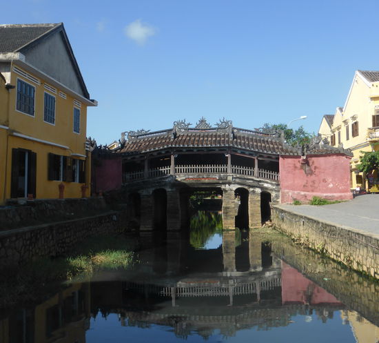 Unser erstes Ziel ist die japanische Brücke, sie überspannt mit 18m einen Seitenarm des Thu-Bon-Flusses, der das japanische vom chinesischen Viertel trennte.