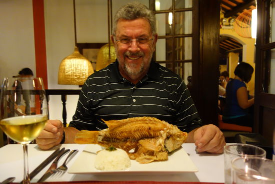 Ulrike's Resümé: die besten Entenbrust ihres Lebens. Mein Fazit: war ich doch schon in Saigon vom Anblick des präsentierten Fisches am Nachbartisch beeindruckt, so steht dieses Exemplar nun vor mir und läßt sich ohne umzufallen vollständig ‚zerlegen’.