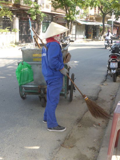 Sie erscheint pünktlich zur Abholung zum Airport in Danang. 45 min Fahrt zurück an den scheußlichen großen 5- und 6-Sterne Hotels (nach My war ein Russe ihr Kunde, der nach einer Stunde Sightseeing wieder an den Hotelswimmingpool wollte – Zimmer ab 500$) vorbei, die sich auch noch vermehren - „Sheraton coming soon“ - durch die ultramodern wirkende Stadt zum Airport