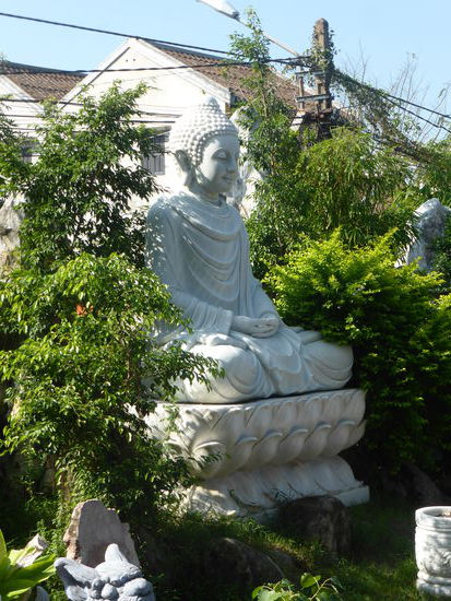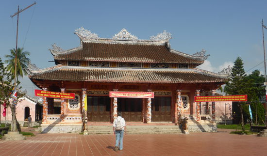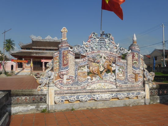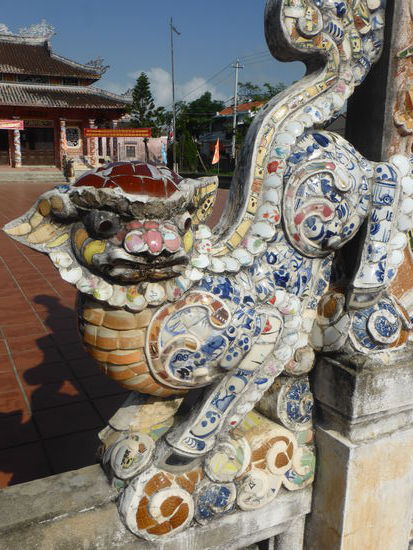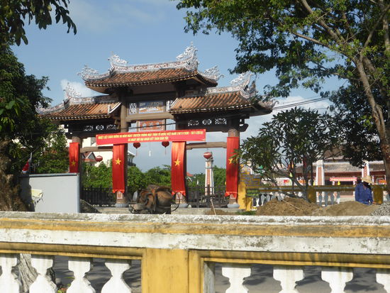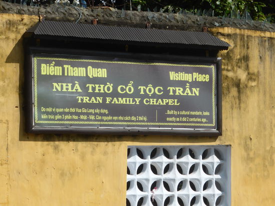 Seit 1994 können auch Touristen die Andachtskapelle der Familie Tran besuchen. Die Familie wanderte vor ca. 300 Jahren aus China ein, und verehrt hier ihre Ahnen. Unter ihnen war auch ein hochgestellter Mandarin unter Kaiser Minh Mang. Leider ist das Fotografieren nicht erwünscht, und da wir von einer netten jungen Dame zu zweit geführt werden ist dies auch nicht möglich. So können wir die Elfenbeinschnitzereien und die alte Münzsammlung nur in Augenschein nehmen.