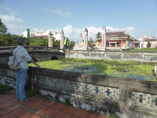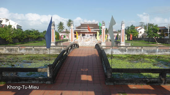 An einer Hauptstraße – Tran Hung Dao -, die bereits außerhalb des Altstadtviertels liegt, finden wir eine verlassene Tempelanlage des Konfuziustempel (Cổng Khổng Miếu). Da vor ihr eine abenteuerliche Kanalbaustelle ist, ist der Zutritt etwas erschwert, dafür ist am Teich und im Hof niemand, so dass wir uns ungestört viele der Details ansehen und fotogafieren können, ohne das Touristen durch das Bild laufen. .