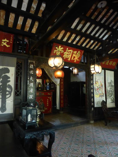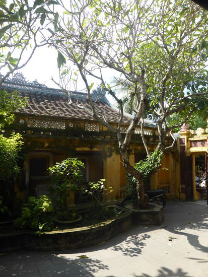 Nebenan stehen die typischen alten Häuser von Hoi An und noch ein paar Häuser weiter ist die Kapelle der Familie Tran, die über 5 oder waren es 7 Generationen das Haus bewohnt hat. Hier hätte man eigentlich ein Ticket benötigt, das aber My mitgenommen hat. Aber die nette junge Dame verzichtet darauf, wohl auch in der Hoffnung, dass man im angeschlossenen Shop später etwas kaufen könnte.
