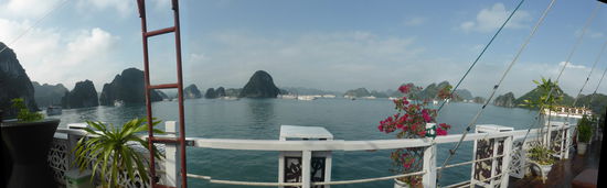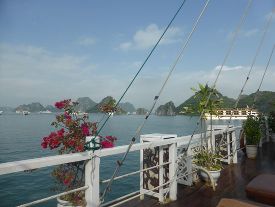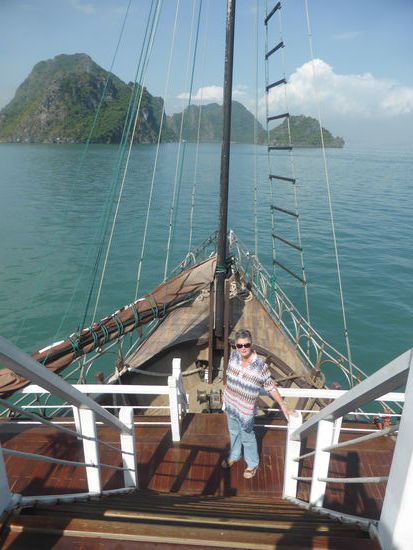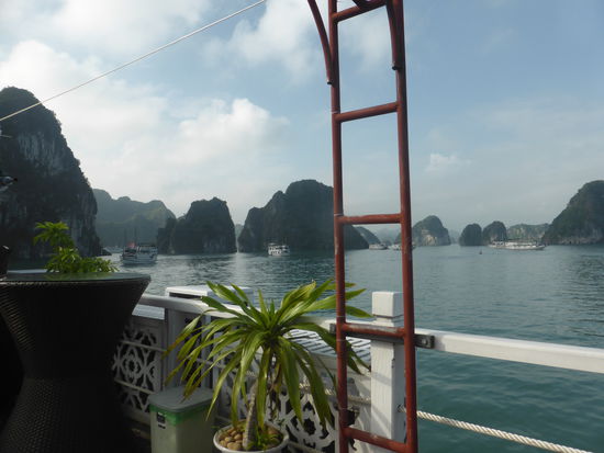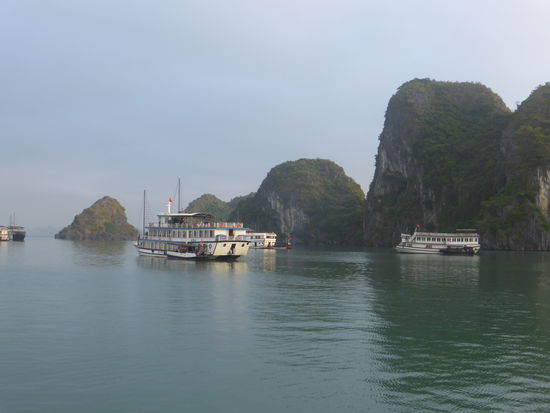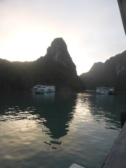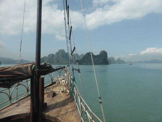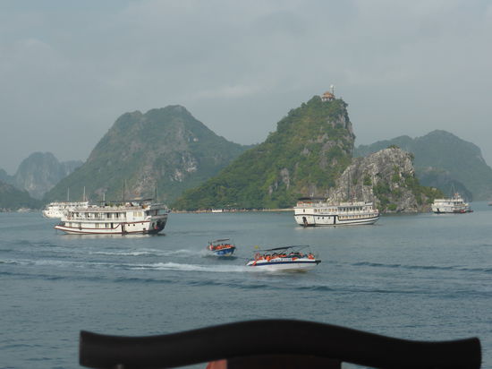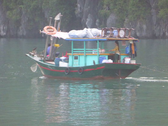 Die anderen geankerten Schiffe legen allmählich ab. Für Interessierte gibt es noch die Vorführung von Frühlingsrollen-Rollen und sodann verkürzt man die Rückfahrzeit durch ein Lunchbuffet, das m.E. wieder bessere Sachen enthält. Während wir dann unseren nicht vorhandenen Hunger stillen, fahren wir in die Marina.