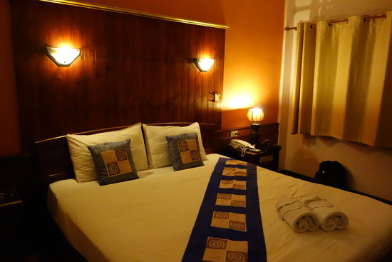 Die Visaformulare bestehen aus einem weißen Blatt mit Platz für ein Paßfoto, das man sich gegen Zahlung von einem Dollar für eine Paßkopie auch sparen kann, und einem zweigeteilten langen Formular, dessen einer Teil für die Ein- und der andere für die Ausreise gilt. Alles hat man also dreimal auszufüllen. Das weiße Blatt wird dann einkassiert und den Paß mit der zweiten Hälfte des anderen Formulars erhält man gegen Zahlung von 30+1 US$ für die eigentliche Paßkontrolle an die man auch als Ehepaar getrennt antereten muß. Dort hat man inzwischen wohl auch Fotoapparate – wozu dann das Paßfoto? – ich soll meine Brille abnehmen, ich weigere mich und geht es. Draußen wartet dann unser neuer Guide ‚Johnny’, sehr unterwürfig , wir wissen noch nicht ob Mann oder Frau und bringt uns mit einem großen Transitbus zum Hotel, das nun einen ganz anderen Charakter als die bisherigen hat. Etwas altmodisch, könnte ein ehemaliges Kolonialhaus gewesen sein. Das Zimmer ist groß, das Bad ok. Aber halt alles etwas antiquierter wie auch der Fernseherkasten mit SAT-Anschluß.