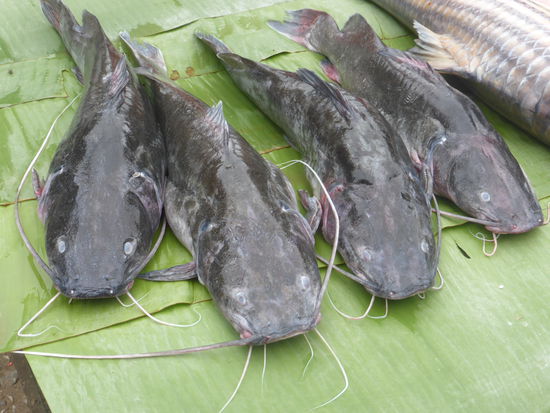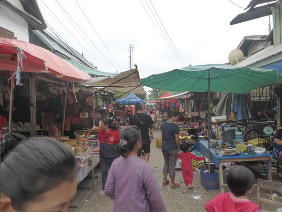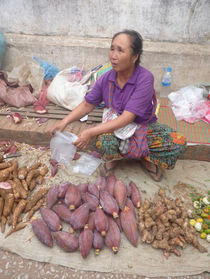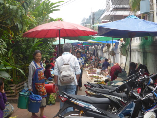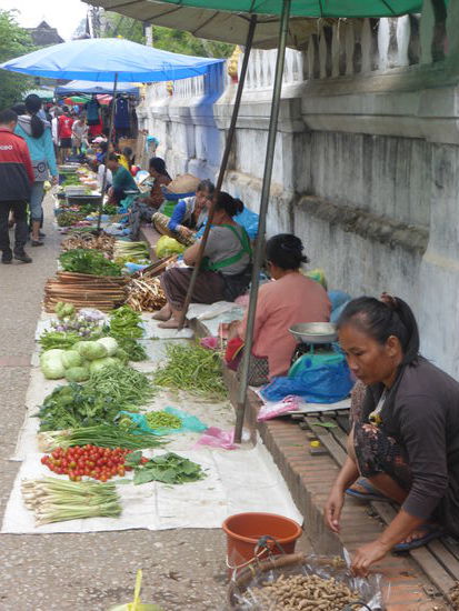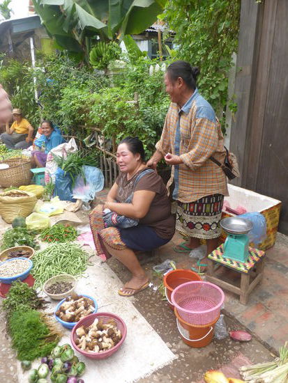 Johnny kommt sehr pünktlich und wir werden in die Stadt gebracht, es ist tatsächlich etwas weit außerhalb. Wir beginnen mit dem local market, der diesmal diverse Neuigkeiten in sich birgt, wir lebende Großfrösche, Würmer, getrocknete Fische und auch Grünzeug mit neuen Namen. Danach beginnt der eigentliche Vat-Tag.