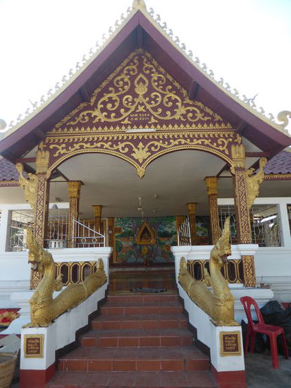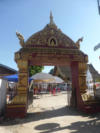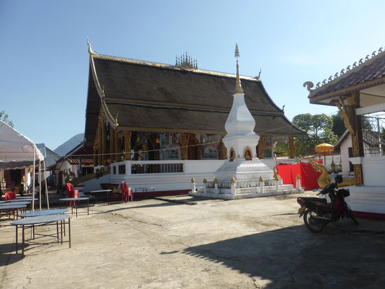 Nong Kham Kayaram - hier stellen wir fest, dass es im Gegensatz zu unseren Kirchengeländen durchaus üblich, dass Motorräder hineinfahren, Kinder lärmend spielen und auch Essen gekocht wird.