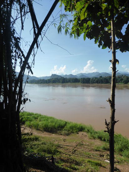 Wir suchen etwas Richtung Mekong und finden ein verlassenes Camp, das aussieht wie ein Freilichtmuseum. Niemand hält uns auf und wir wandeln darin umher, bis uns ein Junger Mann aufklärt, das hier amerikanische Studenten übernachten, die im Elefantencamp tätig sind.