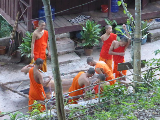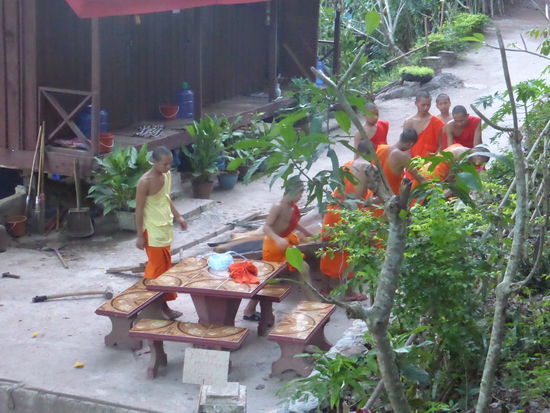 Im Luang Prabang Kitchen Restaurant, das bei Tripadvisor gar nicht gut wegkommt, essen wir auf Empfehlung von Johnny zu Abend. Ulrike ißt zur Abwechselung von Chicken mal Chicken und ich bestelle einen Fischsalat mit diversen Kräutern – zunächst gewöhnungsbedürftig und danach sehr lecker. Auch das Glas Wein für Ulrike ist in Ordnung und überteuert war es auch nicht. Zu Hause angekommen schaffe ich es wieder einmal nicht, mich zum Bordbuchschreiben aufzuraffen, aber ich schaffe es vor dem morgigen Start um das Frühstück herum.