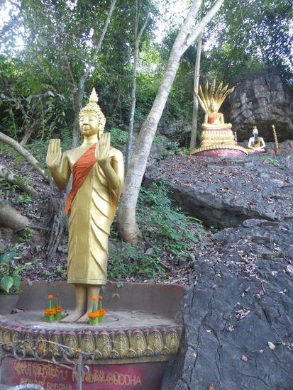 Über 400 Stufen, die z.T. sehr hoch sind, sind zu bewältigen. Wir sind fast alleine unterwegs. Oben angekommen stellen wir jedoch fest: es gibt noch mehr Menschen (sind von der anderen Seite hochgestiegen, hatten dann allerdings nicht die zahlreichen Buddhas gesehen.), die den Sonnenuntergang sehen wollen.