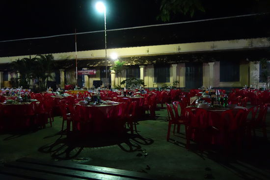 Johnny will uns ein Lokal zeigen und das liegt ganz weit außerhalb im Norden. Auf dem Weg dorthin kommen wir an einer Primaryschool vorbei, auf deren Schulhof ca.180 Tische aufgebaut sind. Eine Hochzeitfeier für fast 1000 Personen wird hier vorbereitet, Johnny erklärt: diese Größenordnung ist hier Gang und Gäbe.