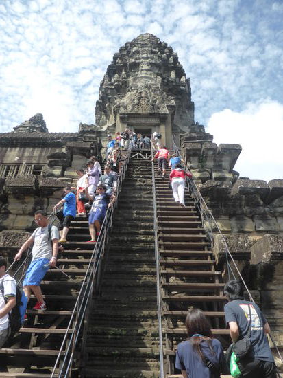 Nach ca. 30 min. Wartezeit sind wir an der Reihe, - nicht angemessen gekleidete werden bereits aus der Warteschlange geholt – wir müssen nur die Kopfbedeckung abnehmen und können nach Erhält unserer Karte die supersteilen Treppen hinaufsteigen.
