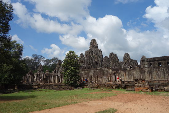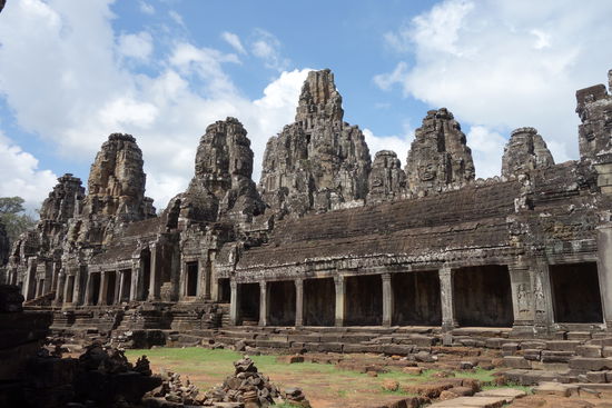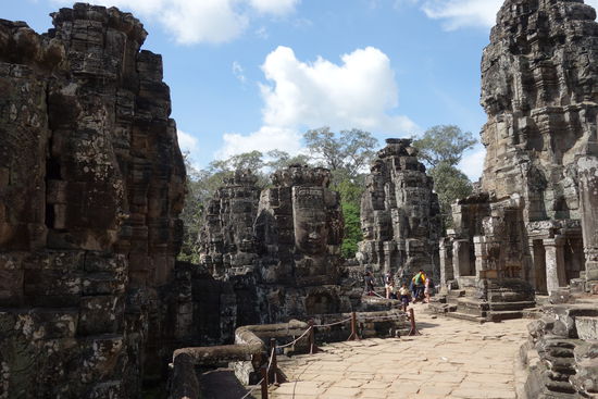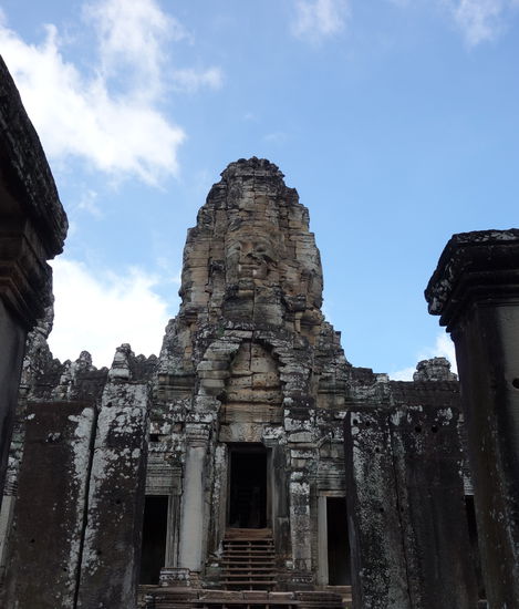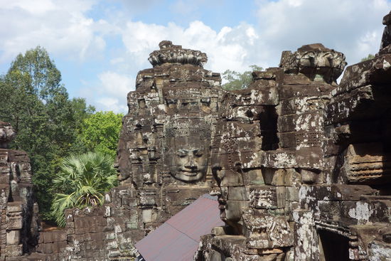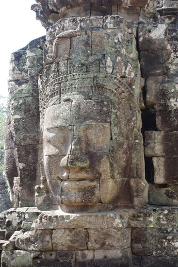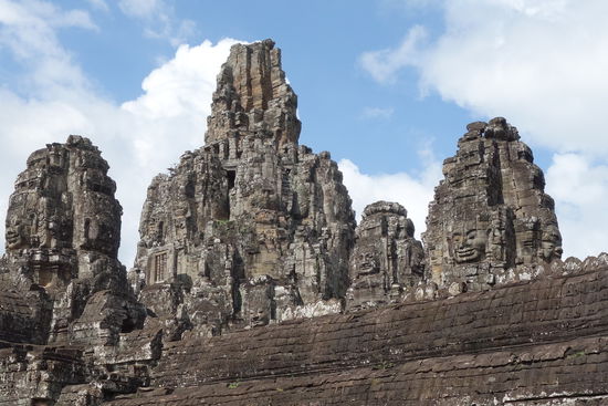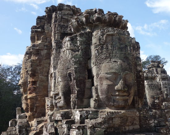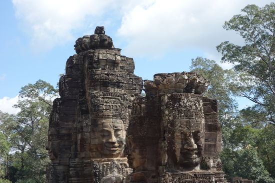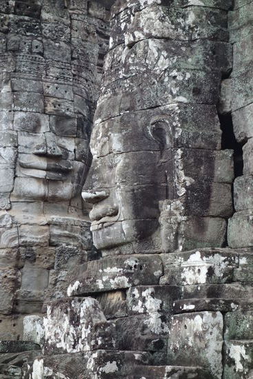 Angkor Thomm ist kein Tempel, sondern eine Stadt mit 54 Türmen, die dem Laien wir die von Angkor Wat vorkommen. Mit dem Unterscheid, dass auf jedem dieser Türme ein Gesicht zu erkennen ist. Von außen davorstehend kommt einem die Anlage wir eine große graue Masse vor. Erst bei genauerem Hinsehen fallen die vielen Details auf.