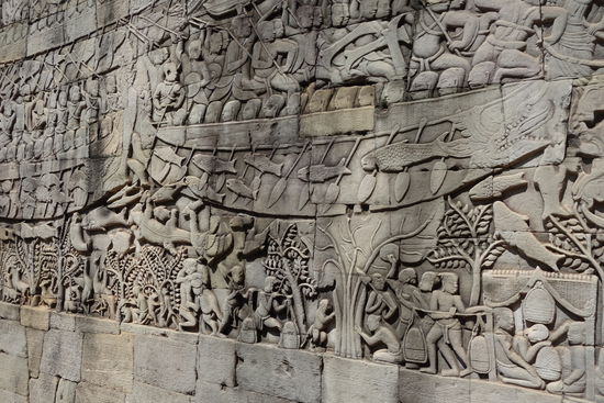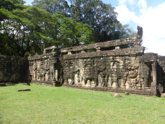 Die Elefantenterrasse ist eine 300m lange und 2,5m hohe Plattform, die dem König und seinen Untertanen wohl als Tribüne diente. Hier wurden Prozessionen, Zeremonien und Wettbewerbe veranstaltet.