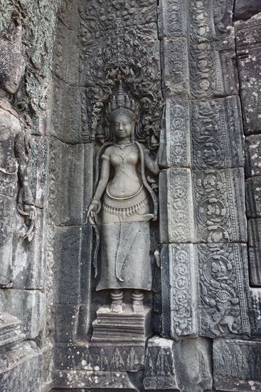 Hier ist das erste Mal zu spüren, dass es wohl Heerscharen von Touristen gibt, die Siem Reap besuchen. Die Hitze man hat uns schon zu schaffen, und wir schleichen von Schatten zu Schatten. Auch hier gibt es wieder Tipps von Mr. Sen für die besten Fotografierpositionen. Auch was man zu fotografieren hat, erfährt man so, nämlich ein Bild der besterhaltenen Apsara. Nett gemeint, aber ...