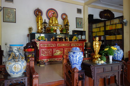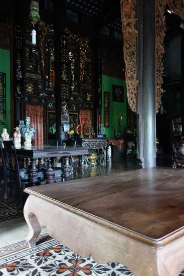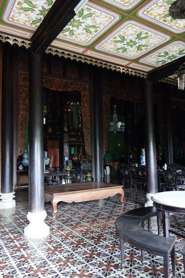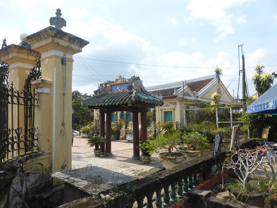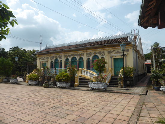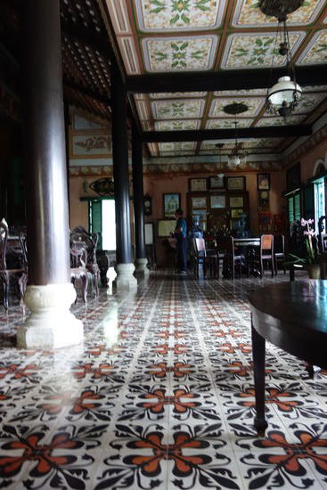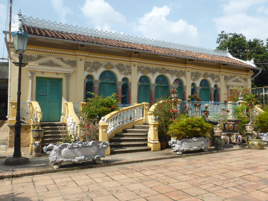 Der nach traditionellem Muster erbaute Komplex - Tor, Garten, großer Hof und Vorzimmer zum Empfang der Gäste - enthält neben vietnamesichen Stilelementen auch französische.