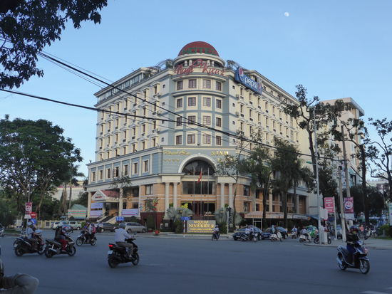 vom Balkon unseres Zimmers haben wir einen guten Überblick über die Hauptstadt der Provinz des Mekong-Deltas