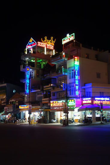 Nach dem Abendessen bummeln wir noch etwas über den Nachtmarkt und studieren die Preise für Nachahmerprodukte. (z.B. Lacoste- Polo – 25000 VND). Auf dem Zimmer ist es inzwischen wieder recht heiß, da mit Entfernen des Schlüssels auch die Stromversorgung für die Klimaanlage unterbrochen wird.