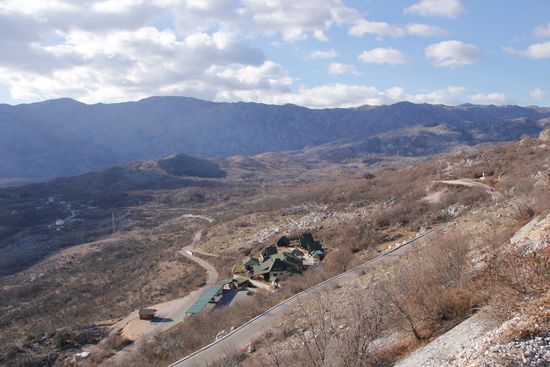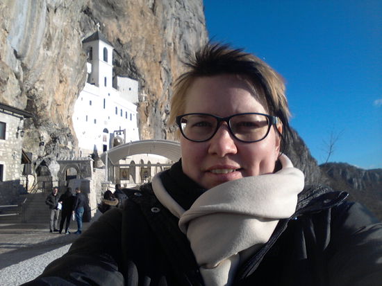 Gleich nach unserer Ankunft fahren wir zu der in den Bergen gelegenen Klosteranlage Ostrog.