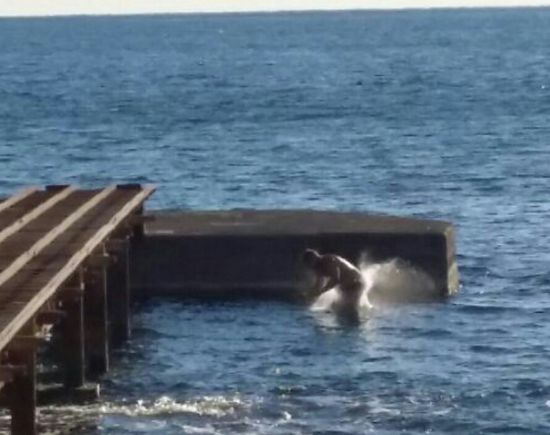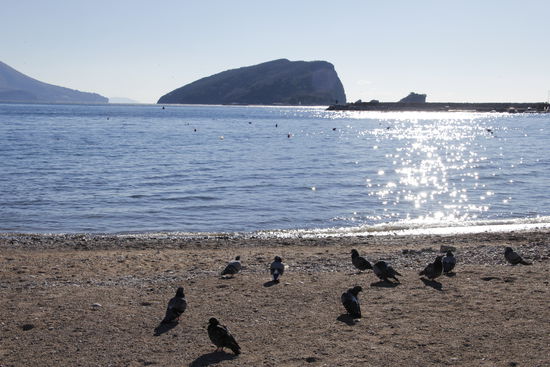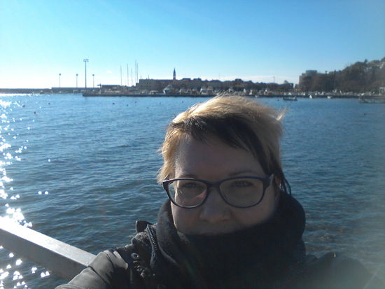 Zum Glück war es heut nicht so windig und in der Sonne war es angenehm warm. Nach der Besichtigungstour gab's erst mal nen Kaffee am kleinen Strand direkt vor der Altstadt. Da gab es sogar nen ganz harten Mann, der bei der Kälte ins Wasser ging.