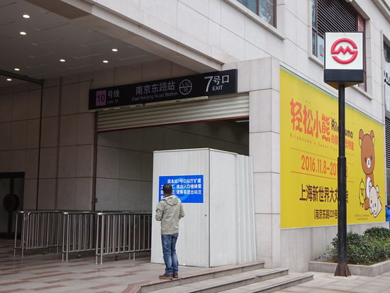 Eingang zu einen der großen Umsteigebahnhöfe im Metro Netz von Shanghai - People Square mit den Linien 1 , 2 und 8