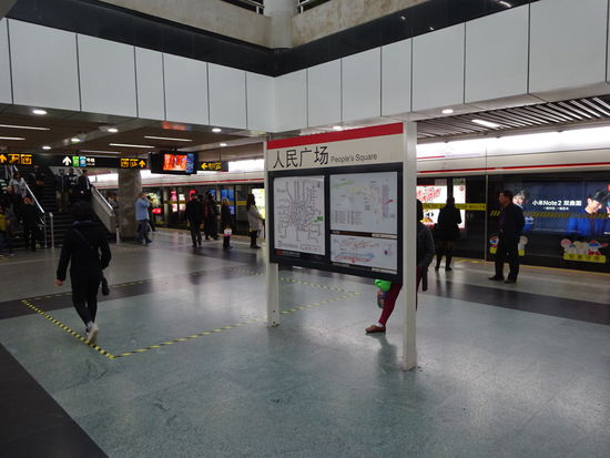 People Square einer der großen Umsteigebahnhöfe im Metro Netz von Shanghai mit den Linien 1 , 2 und 8