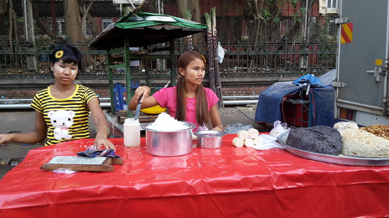 Die Altstadt ist weitgehend fußgänger-unfreundlich. die kolonialen Fassaden bröckeln und dämmern vor sich hin und warten auf Rettung. Yangon ist zudem auch noch nicht touristisch erschlossen. Burmesen sitzen von Kindesbeinen an, an den vielen al-fresco Garküchen auf Fußgängerwegen. Touristen, die gerne ein AC Restaurant hätten, mit kühlem Bier und ein paar bequemeren Stühlen müssen in Yangon suchen. Durch Zufall fanden wir ein wirklich nettes Restaurant in einer Seitengasse.