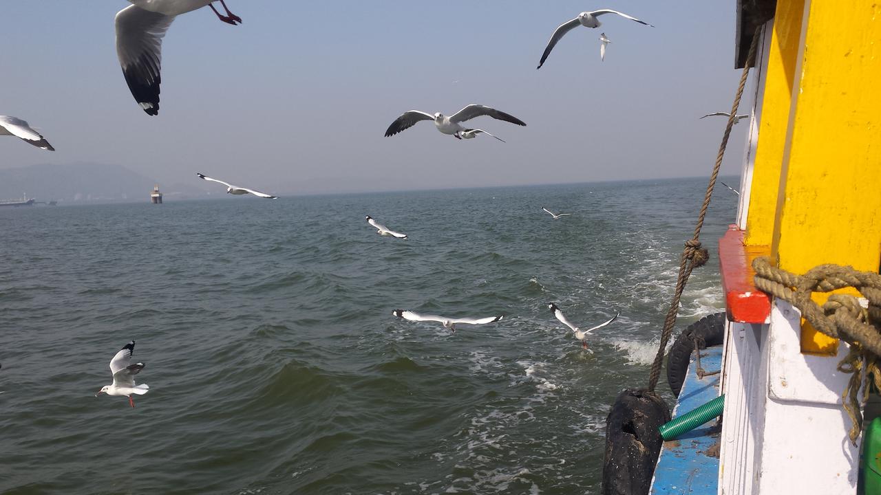 eine Stunde sollte die Fahrt dauern. Die Insel liegt direkt in der Bucht von Mumbai, welche nicht nur voll mit etlichen Schiffen ist, sondern wie soll