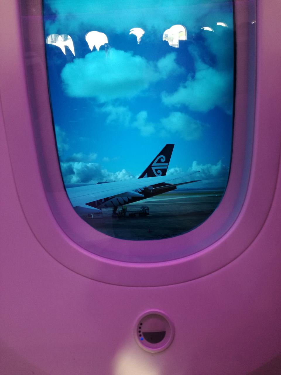 Leider verzögerte sich das Boarding um eine halbe Stunde, sodass wir mit ein wenig Verspätung gestartet sind. Unser Flieger war wohl noch ziemlich neu, u.a. konnte man die Fenster elektrisch verdunkeln und das Entertainmentprogramm war spitze.