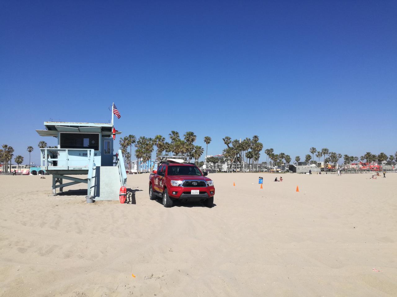 Wir sind dann weiter durch die Stadt zum Venice Beach gefahren. Auch hier sehen wir viele Obdachlose und Menschen, die dem Drogenkonsum verfallen sind. Zuerst haben wir das Auto etwas entfernt vom Strand an der Straße abgestellt.
