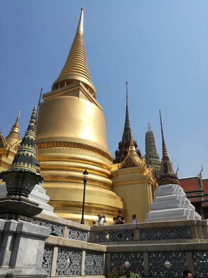 Irgendwie war es auch eine skurrile Situation. Der Tempel des Smaragdbuddhas gehört zu den Plätzen höchster Verehrung in ganz Thailand, das bedeutet, viele beten davor und dahinter schieben sich die Touris vorbei. Zum anderen stehen viele Thailänder in einer endlosen Schlange, um den Sarg des Königs noch einmal zu sehen. Ich stelle mir das bei uns vor. Zum Gottesdienst kommt eine Gruppe Chinesen in die Kirche und fotografiert drauf los.