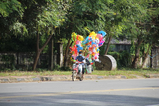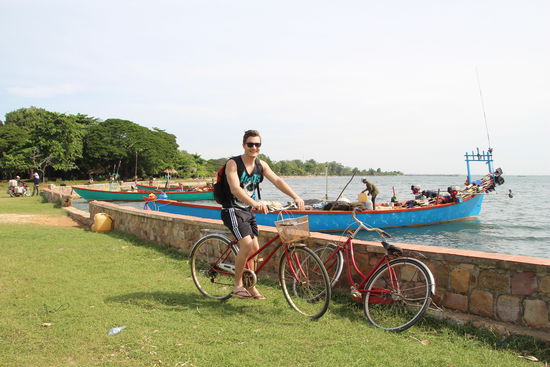 Weiter radeln wir an der Küste entlang. Die haben in den letzten 4-5 Jahren tatsächlich eine ultra breite Straße hier hingebaut, die aber keiner braucht. Später in einem Gespräch mit unserem Resort-Chef erfahre ich: Die Regierung hat Budget, das investiert werden muss. Kep ist eine der neuesten Provinzen und dann hat man halt mal beschlossen, eine Straße zu bauen. Bis 2018 soll die komplett durch den ganzen Ort gehen. Braucht man zwar nicht, aber das Geld ist investiert - was danach dann gebaut wird, interessiert heute nicht. Man lebt doch schließlich im HIER und JETZT.