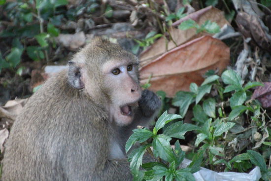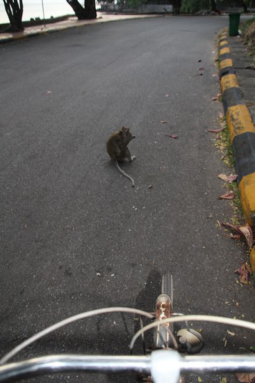Beim Radeln zum Crab Market begegnen uns noch Affen - klar, wir sind hier am Rande eines Nationalparks - macht Spaß denen zuzusehen - es "menschelt" immer so