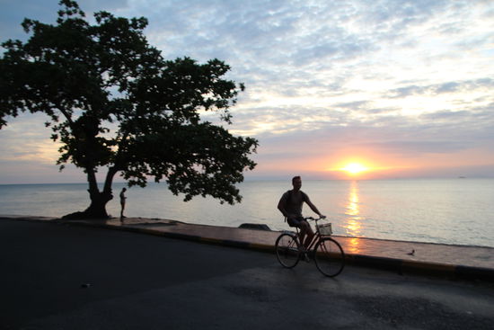 Die Sonne ist am untergehen und zaubert wieder einen tollen Abendhimmel und auf einmal ruft mein Herr Sohn (der sich am Vorabend noch darüber mockierte, was alle FRAUEN an Sonnenuntergängen finden): "halt, Mama, mach mal ein Foto von mir wie ich mit diesem komischen Rad hier bei dieser Stimmung fahre..." hahaha, auf ein Mal!!!!