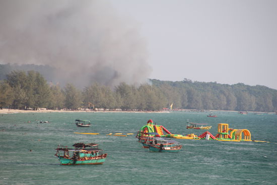 nachdem Kai am Otres Beach schwarze Rauchwolken sieht und wir auch Feuerwehrautos fahren hören, siegt seine Neugier über die Faulheit und wir laufen nochmal den Otres Beach hinauf. Feuer sehen wir keins - ist doch viel zu weit weg, aber immerhin haben wir uns auf diese Art nochmal bewegt, bevor wir dann am morgen wieder unzählige Stunden sitzend verbringen werden.