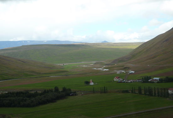 Als erstes besuchten wir die kleine alte Torfkirche Víðimýri. Sie gehört zu den besterhaltenen Íslands. Bei der Weiterfahrt auf der 1 in Richtung Blönduós bemerkten wir, daß etwas mit der Auflaufbremse nicht stimmte. Beim Bremsen knallte es von der Kupplung her. Kein gutes Zeichen. Wir suchten eine Werkstatt auf, welche uns bestätigte, daß die Bremse kaputt war. In Akureyri könnten wir sie reparieren lassen. Also hieß es für uns nun äußerst vorsichtig zu fahren.
