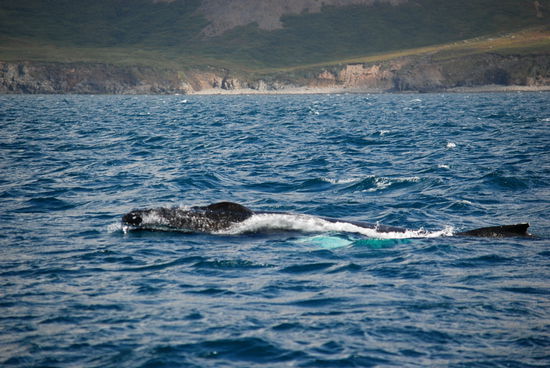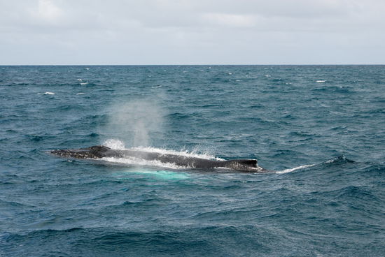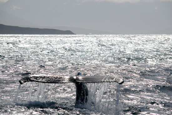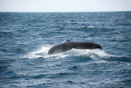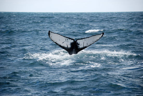Einige Male tauchten Wale unter dem Boot durch und winkten uns mit der Fluke.