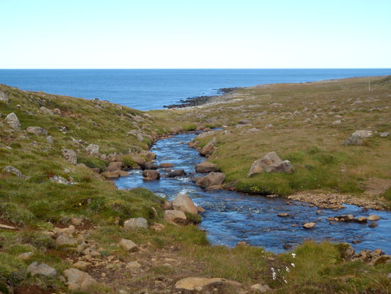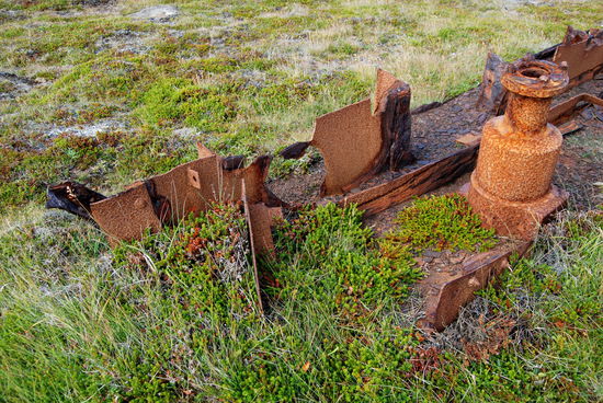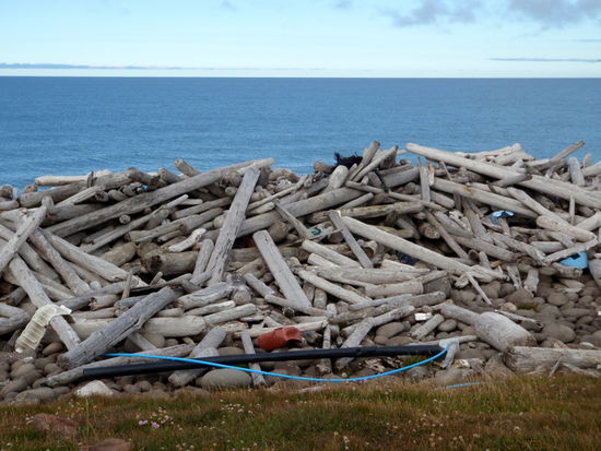 Heute fuhren wir mit dem Pkw an die äußerste nordöstliche Spitze Íslands. Diese Halbinsel heißt Langanes. Vorbei am ersten Steinhaus dieser Gegend verlief der Grusweg entlang der Küste. Am Anfang waren es noch richtige Dünen mit hellem Sand, später dann meist wieder schwarzer Sand. Das Meer hatte hier nicht nur viele große Steine angespült, sondern auch Unmengen an Holz. Viele lange, dicke Baumstämme und Unmengen kleineres Holz türmten sich hier auf, leider aber auch viel Plastik. Der Weg ging geschlängelt ständig auf und ab. Plötzlich lagen verrostete Wrackteile am Strand.