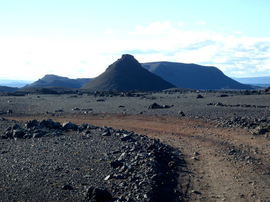 Informationstafeln am Weg erklärten die Entstehung der Calderen des Dyngjufjöll: