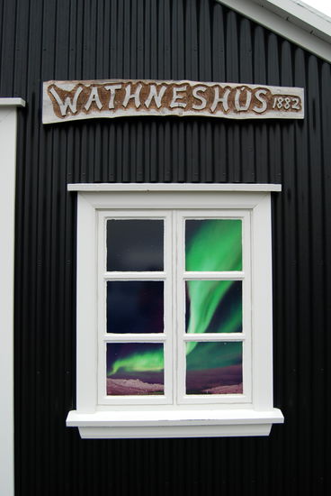 In einem alten Lagerhaus gab es eine Nordlichtausstellung. Zwei Frauen des Ortes hatten viele Fotos vom Nordlicht in ihrer Umgebung gemacht.