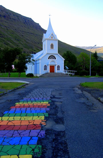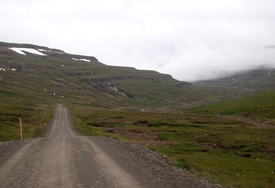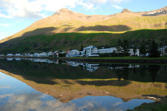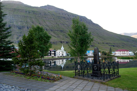 Von Egilsstaðir nach Seiðisfjörður ging es nur ein kurzes Stück über die Berge. Diesmal hatten wir sogar einen schönen Ausblick auf den Ort und den Fjord. Der Campingplatz war vollkommen überfüllt mit den Fahrzeugen, die auf die Fähre am nächsten Tag warteten. Wir trafen einige wieder, denen wir unterwegs teilweise mehrfach begegnet waren. Nach einem kleinen Rundgang durch den Ort, wo wir auch noch einmal ein GPS-Versteck fanden, gingen wir bald schlafen, da wir ja am nächsten Tag, für uns viel zu früh, am Fähranleger stehen mußten.