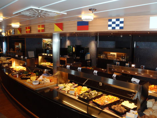 Zwei Tage lang waren wir nun auf See. Am ersten Abend gingen wir zum Buffé, was uns sehr gut schmeckte, insbesondere auch das reichhaltige Kuchenbuffé als Nachtisch.