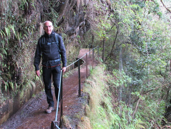 Der Weg führt entlang der Levada oft direkt am Abhang entlang. Die Passagen waren aber gut mit Drahtseilen gesichert und der grüne Bewuchs suggerierte Sicherheit .